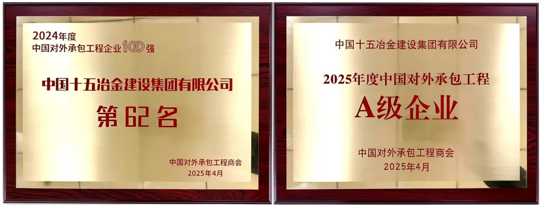 4月24日,2025对外承包工程行业发展大会(第八届)在北京成功举办。会上,中国对外承包工程商会发布2024年度中国对外承包工程百强企业名单(Top100),中国十五冶金建设集团有限公司(以下简称“中国十五冶”)凭借卓越的海外业务表现位列第62位,较2023年度排名提升9位,同时获评2025年度中国对外承包工程行业A级企业。