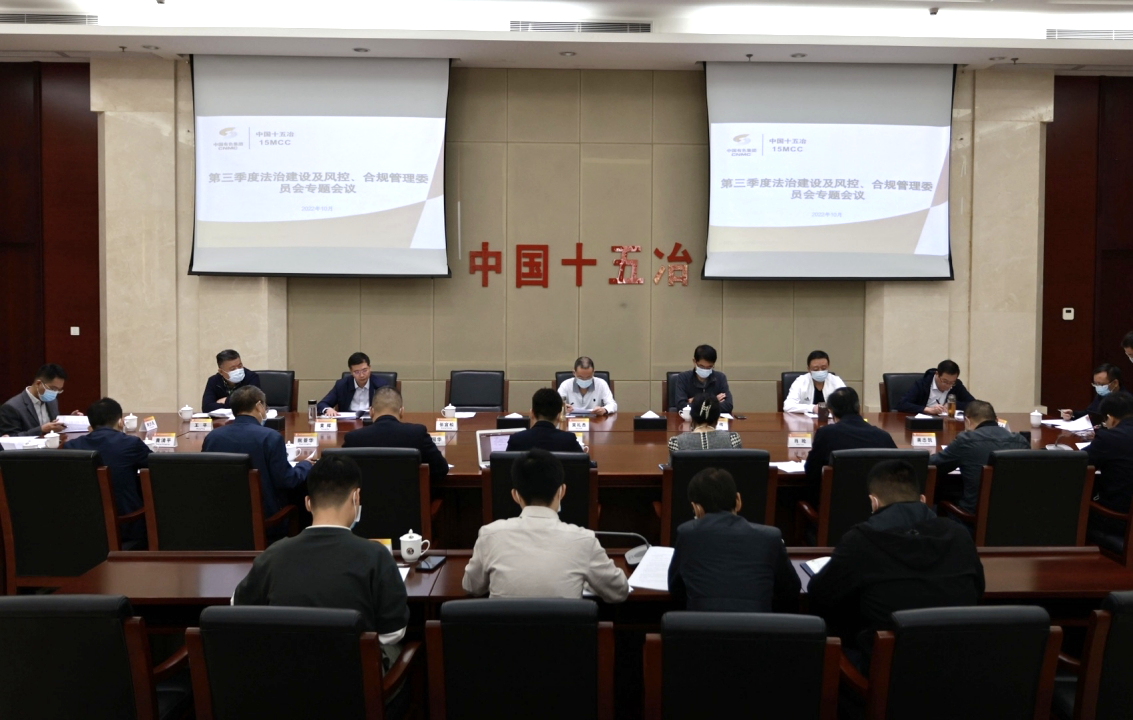 图为中国十五冶法治建设及风控、合规管理委员会召开专题会议