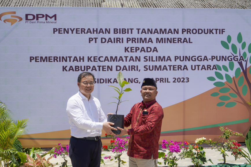 捐赠仪式上,奚正平董事长代表达瑞矿业股东向达瑞项目周边Silima Pungga Pungga社区捐赠龙眼树苗、芒果树苗、榴莲树苗等经济作物树苗共计八百余株。达瑞县议长Sabam Sibarani先生代表社区接受捐赠,并在发言中表示捐赠经济树苗能够帮助当地居民增加收入、改善环境,是达瑞矿业积极承担企业社会责任、保护当地森林生态的积极举措,同时表达了当地居民对于达瑞项目早日建成投产的热切期望。