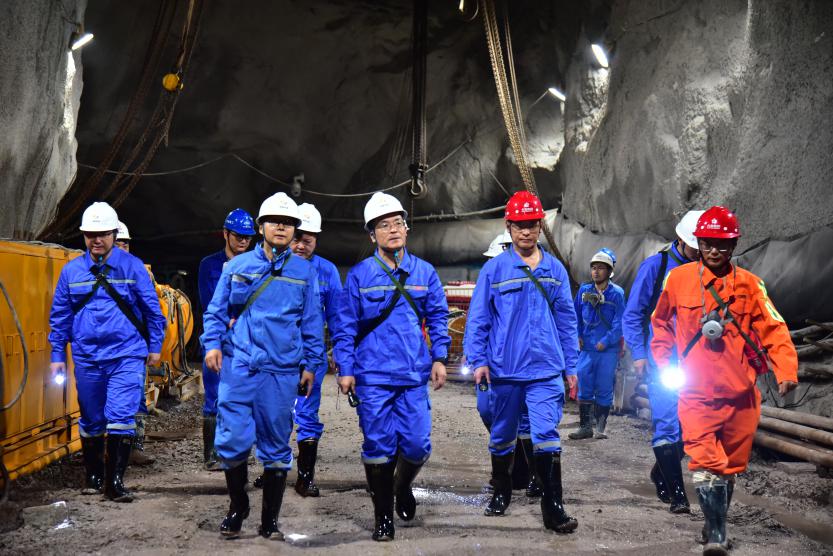 张晋军一行深入中色大冶铜山口矿坑采车间、选矿生产场地、智能化管控中心,实地检查了企业安全生产管控情况,察看了井下滚刀式掘进机作业过程、选矿作业流程、矿山智能化建设和科技兴安环推进情况,详细了解了企业安全环保、生产经营等重点工作进展。